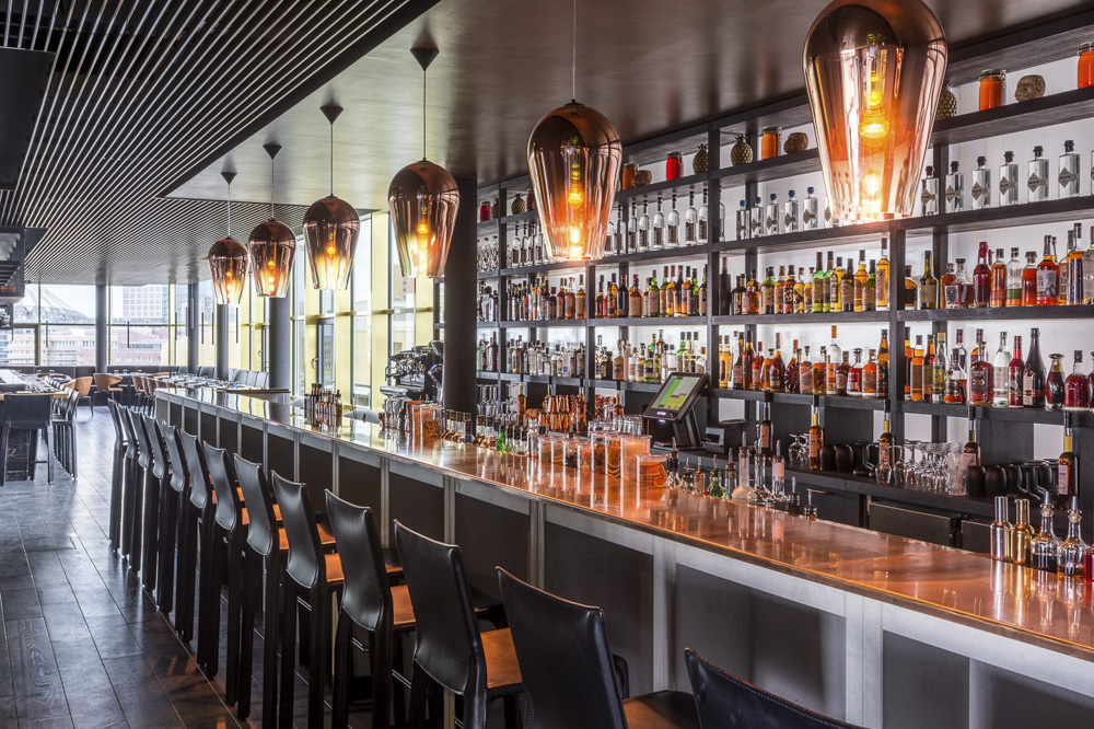 Golvet Sternerestaurant Berlin Barbereich, Weinregal, Sitzlandschaft